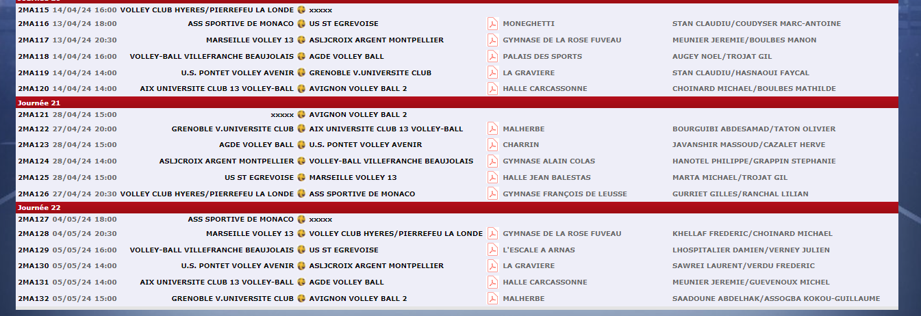 • Calendriers et résultats